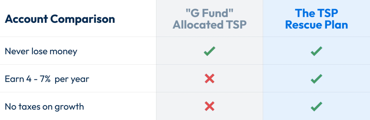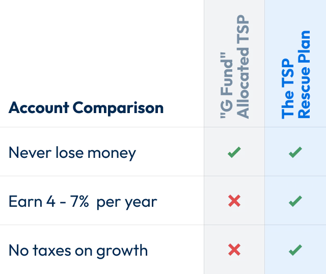 "I was shocked to see the difference between just keeping my money in the g-fund vs protecting with the TSP rescue plan."